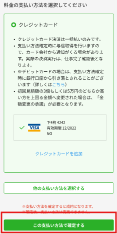 支払い方法を選択いただき、最下部にある「この支払い方法で確定する」を選択してください。