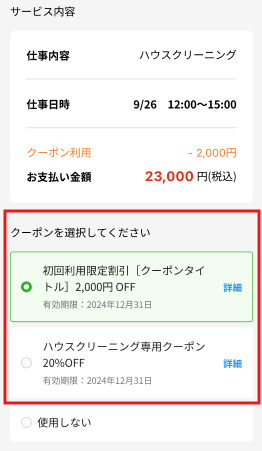 Q. クーポンの有効期限より後の仕事日程でもクーポンは使えますか?